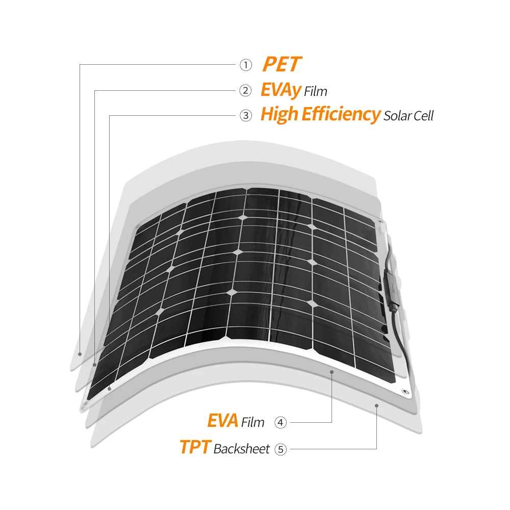 Related Product for 50w flexible solar panel Monocrystalline silicon cell for 12V Battery charger system 100W 150W 200W