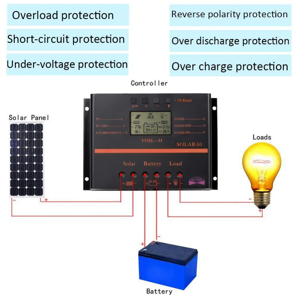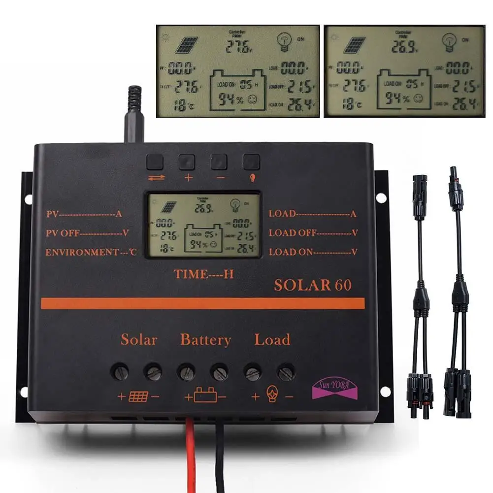 Related Product for PWM 60A Solar Charge Controller 12V 24V LCD Display USB 5V Solar Panel Charge Regulator + 2pcs MC4