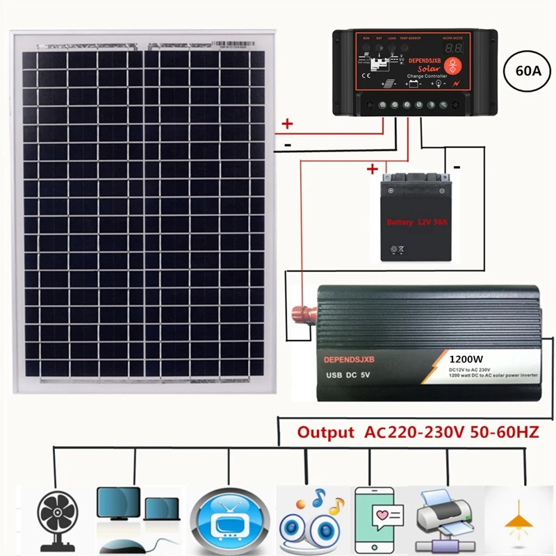 Limited Chance for 18V20W Solar Panel +12V 50A/60A Controller + 1200W Inverter Dc12V-Ac230V Solar Power Generation Kit